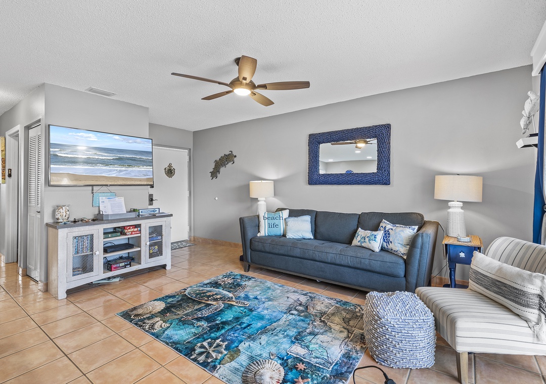 Beautiful beach condo on second floor. Free parking and convenient to beach and local shopping.