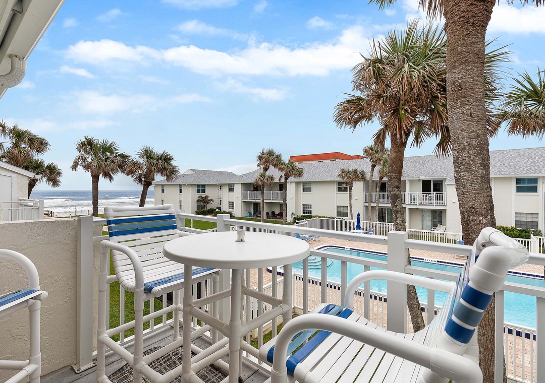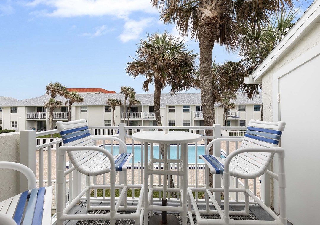 Though most of your time will be spent soaking up the Florida sun by the waves or pool, you'll love to start and end your days on the balcony. The balcony has the perfect second-story view of the pool, complex grounds, and the Atlantic Ocean. Sip your morning coffee and evening wine to the dreamy view at the dining set for two. It'll quickly become your happy place!