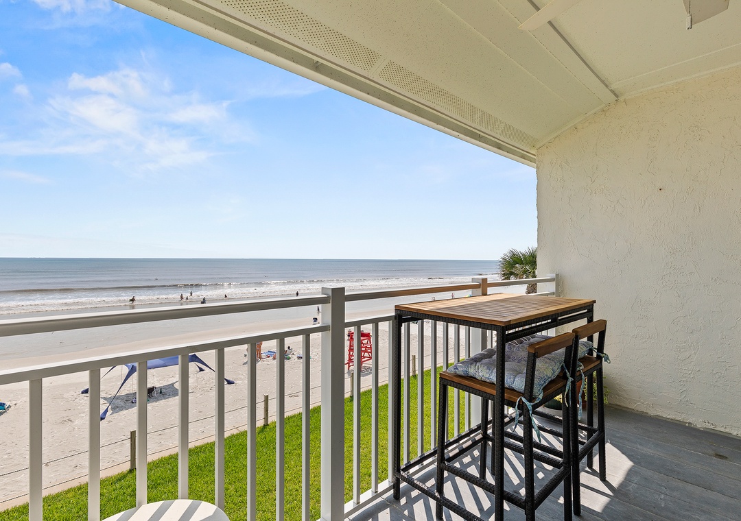 The salty breeze and crash of waves are just a step away from the living area. The second-floor balcony boasts of an envied spot as it has a sweeping view of NSB's serene shore. A high-top, outdoor dining set is provided so you can enjoy early morning coffee and late-night tea to the soul-soothing sight.